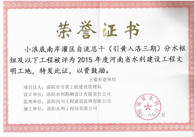 2015年度省級(jí)文明工地-引黃分