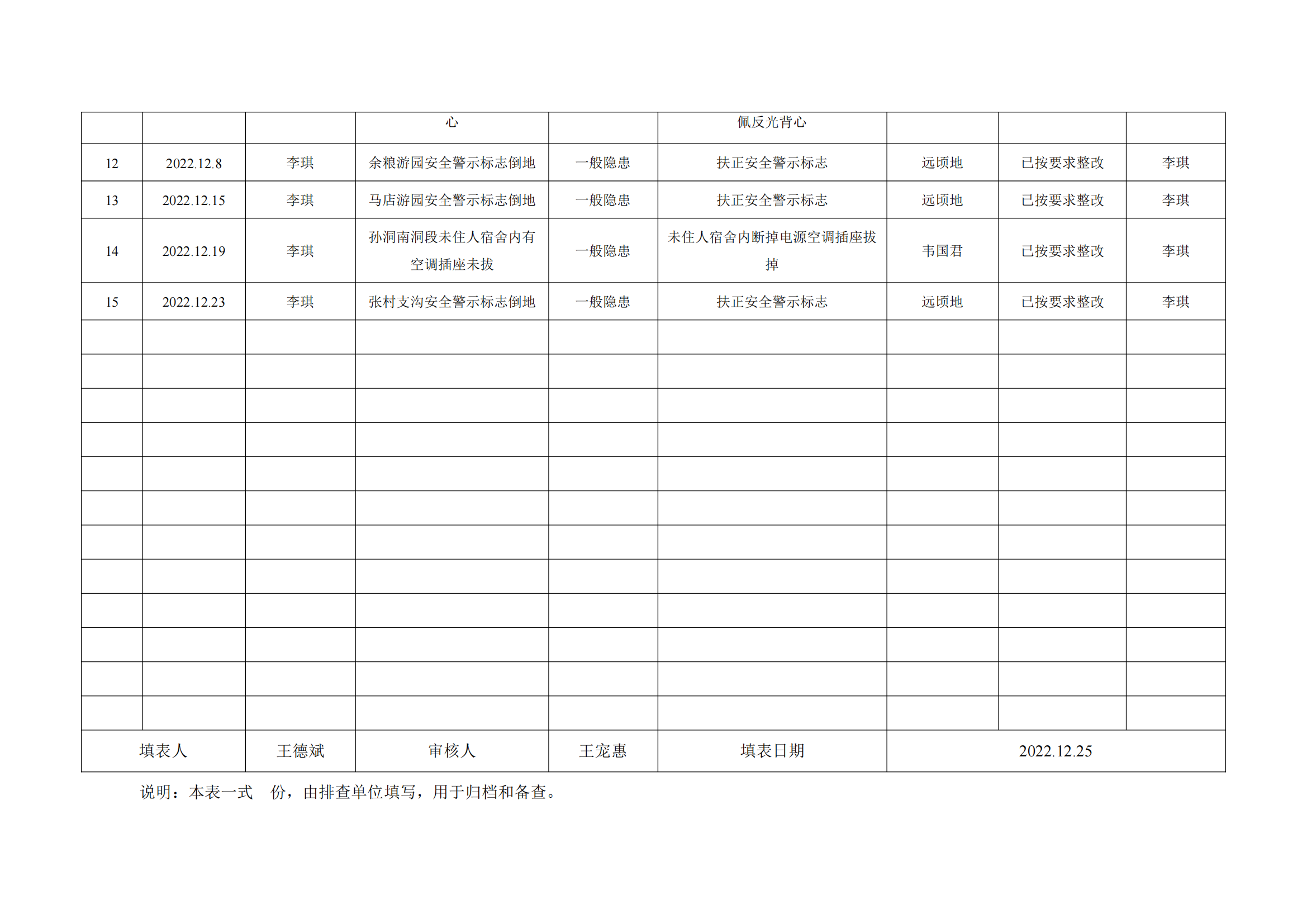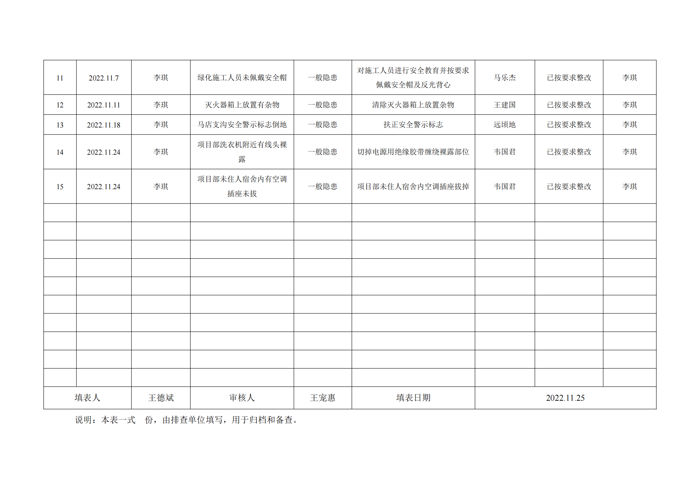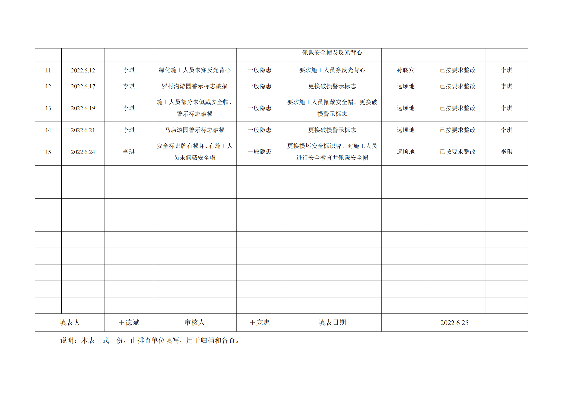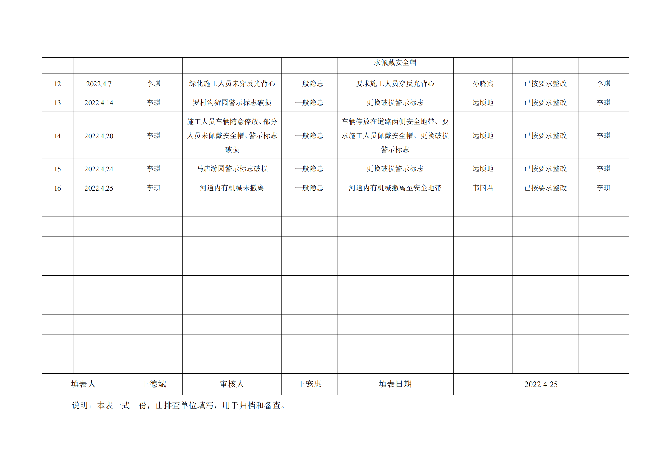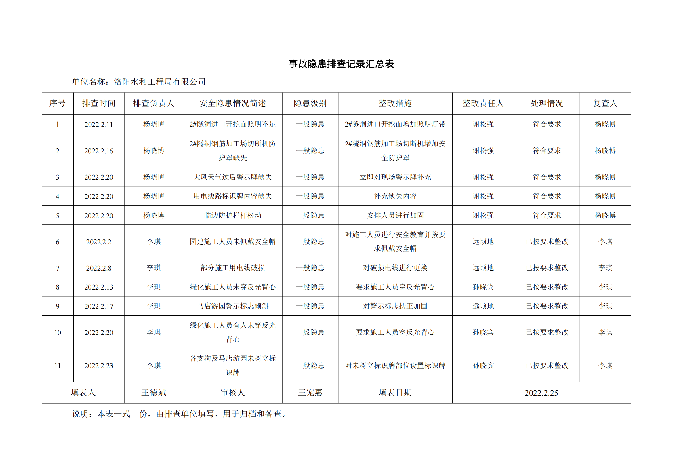 公司匯總事故隱患排查記錄匯總表
