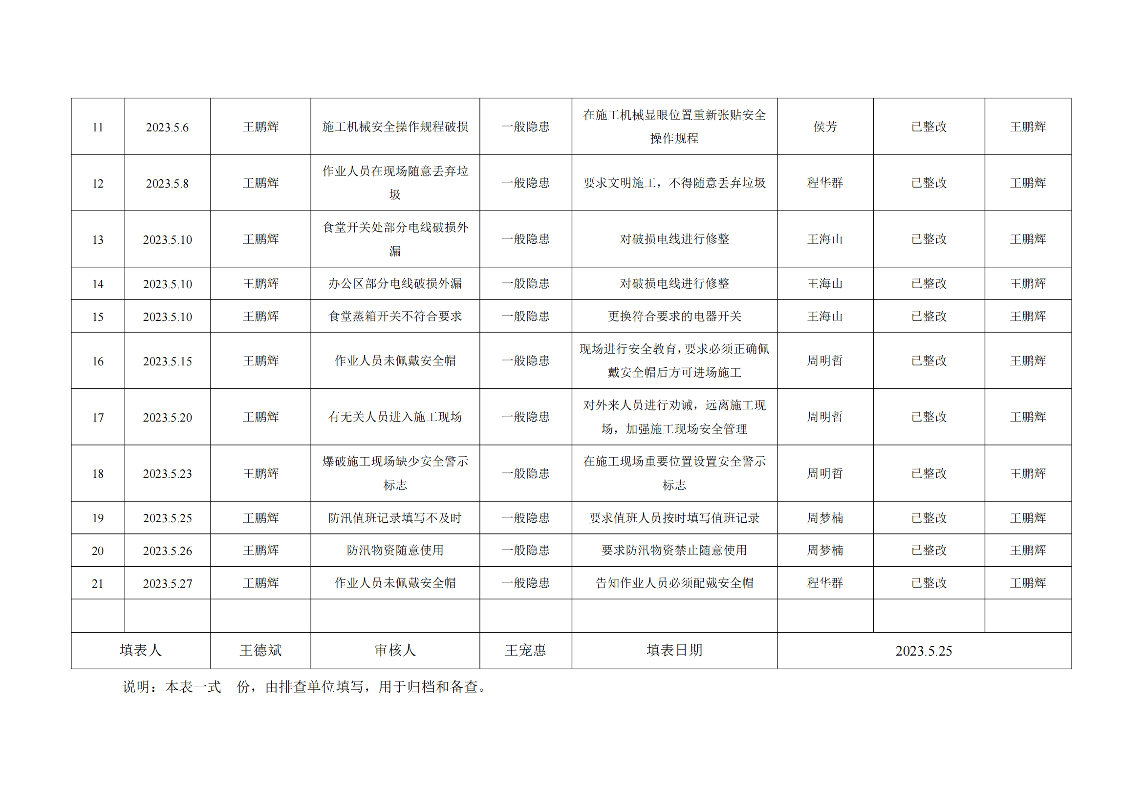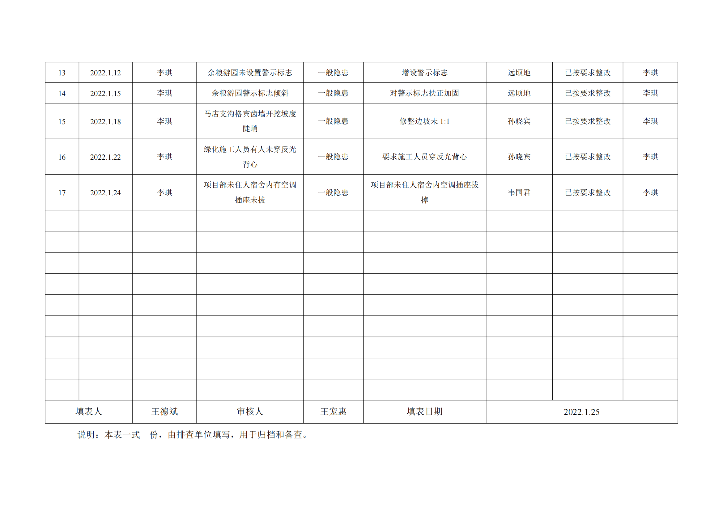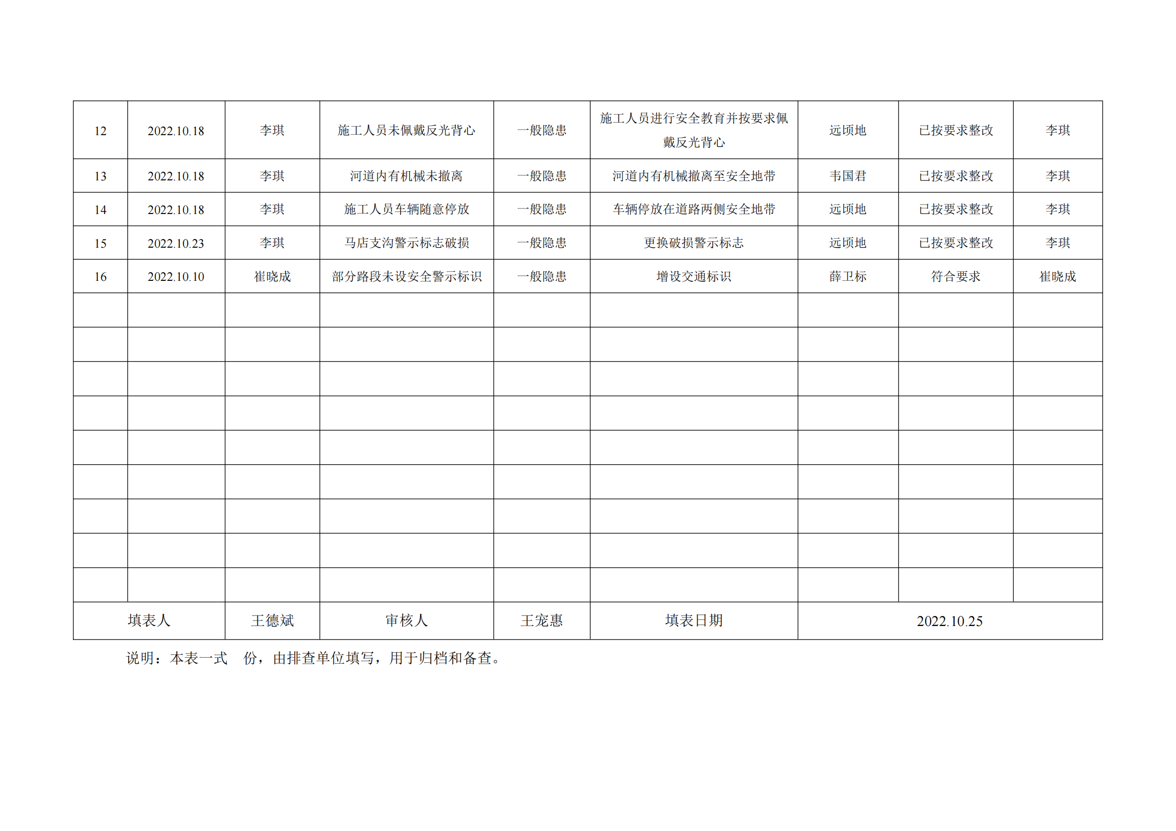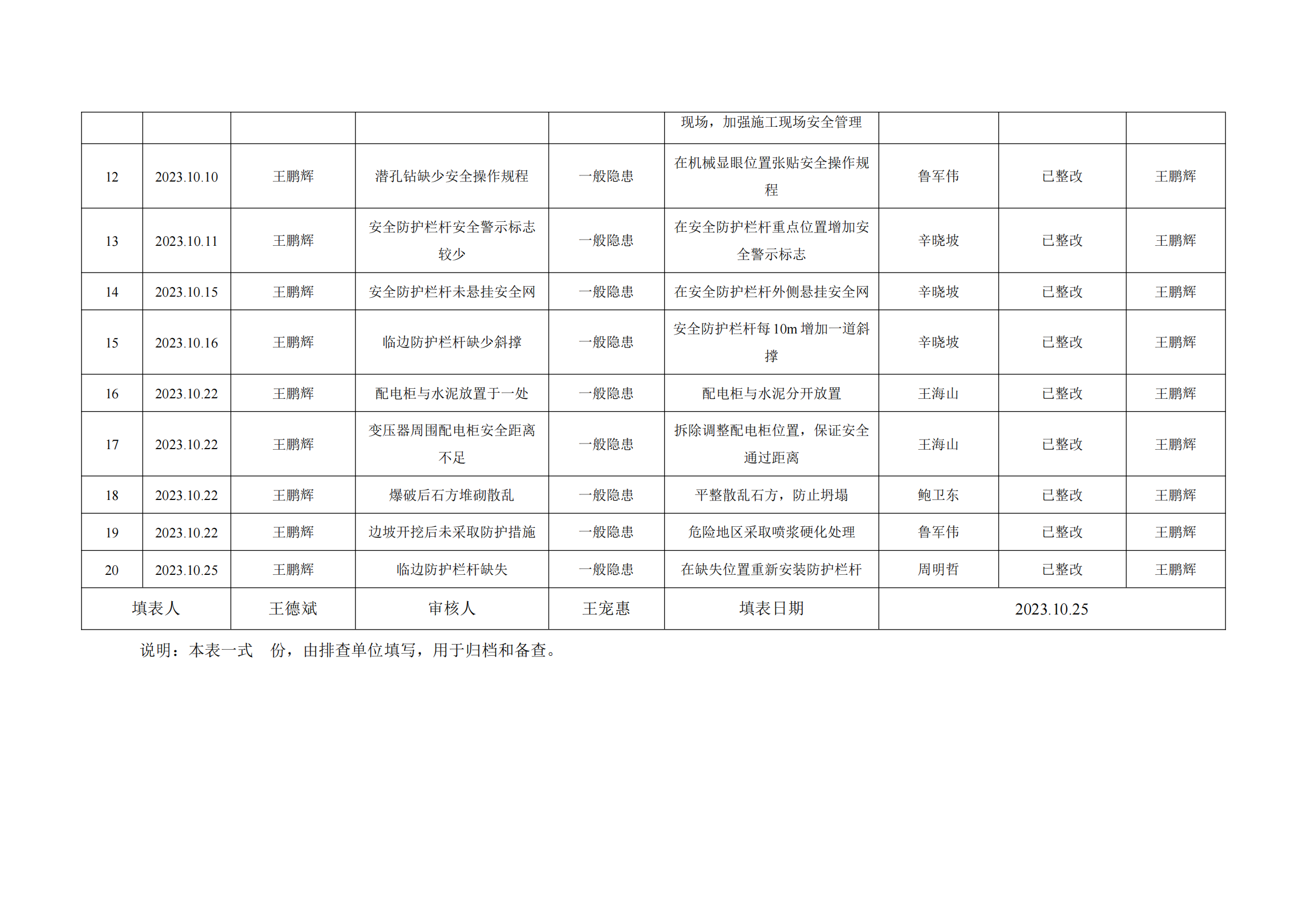 公司匯總事故隱患排查記錄匯總表