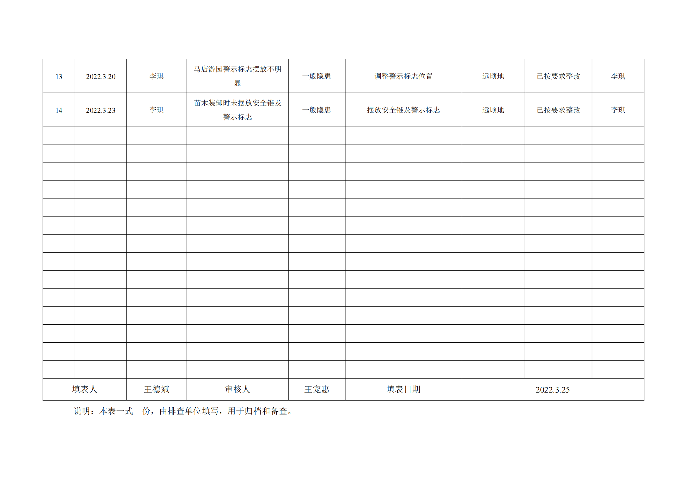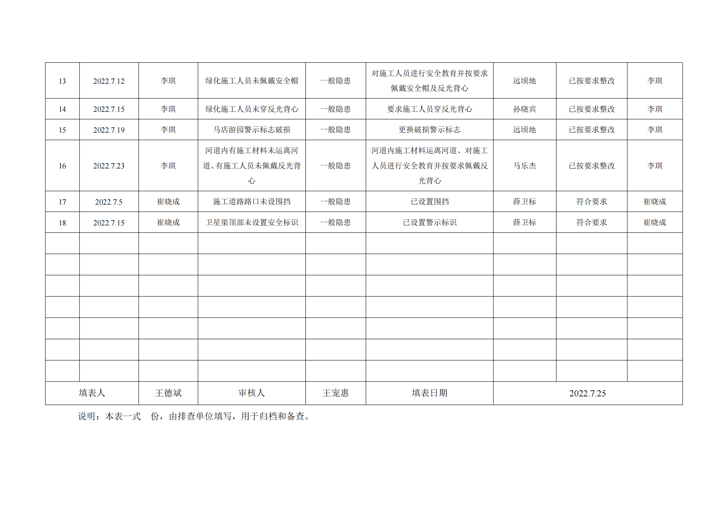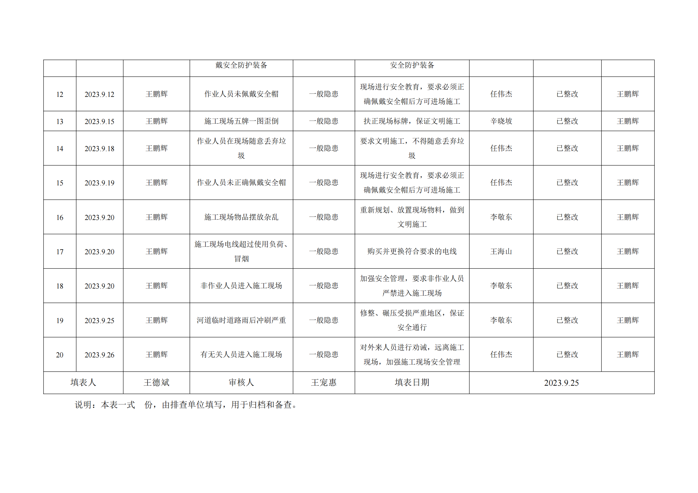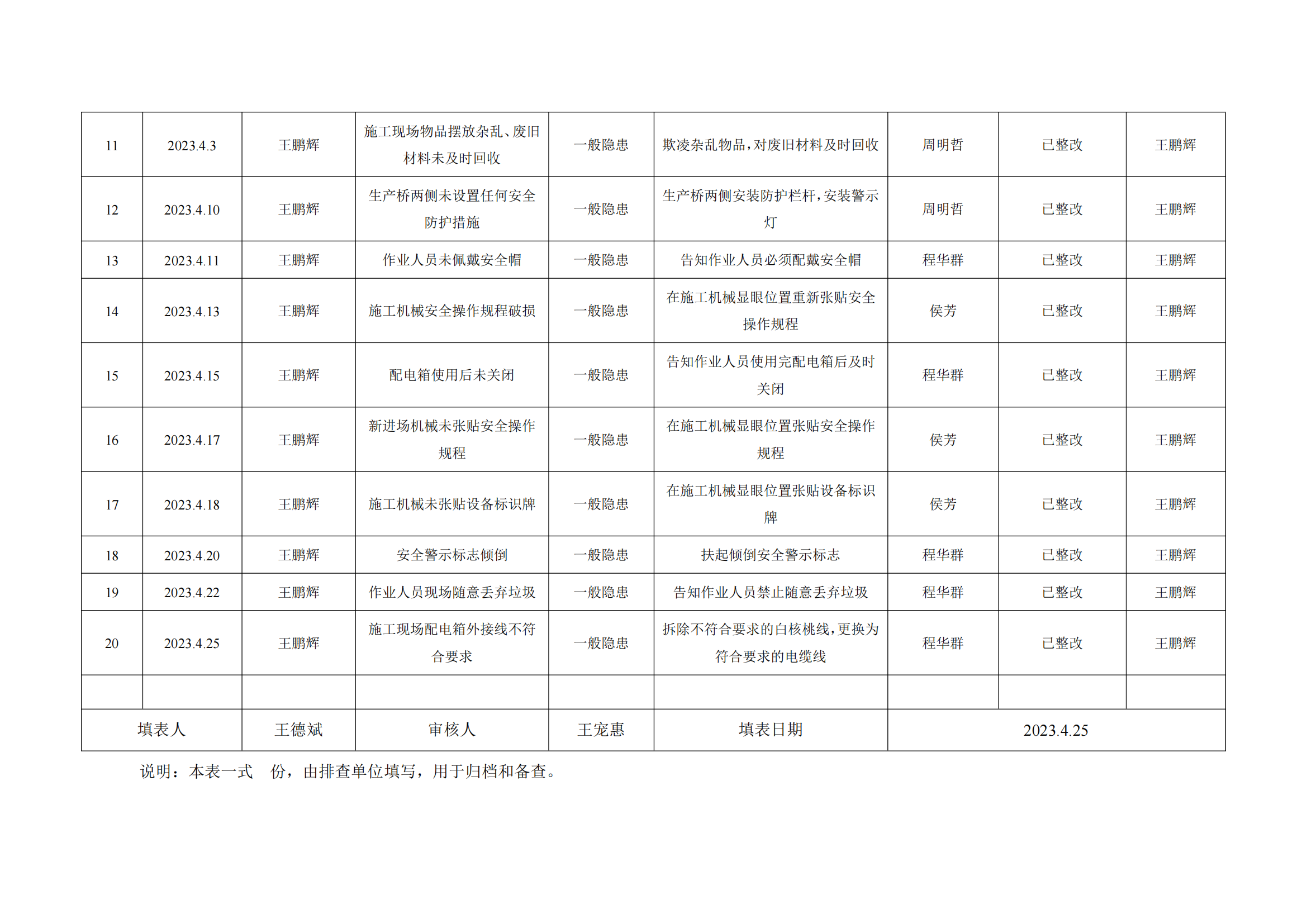 公司匯總事故隱患排查記錄匯總表