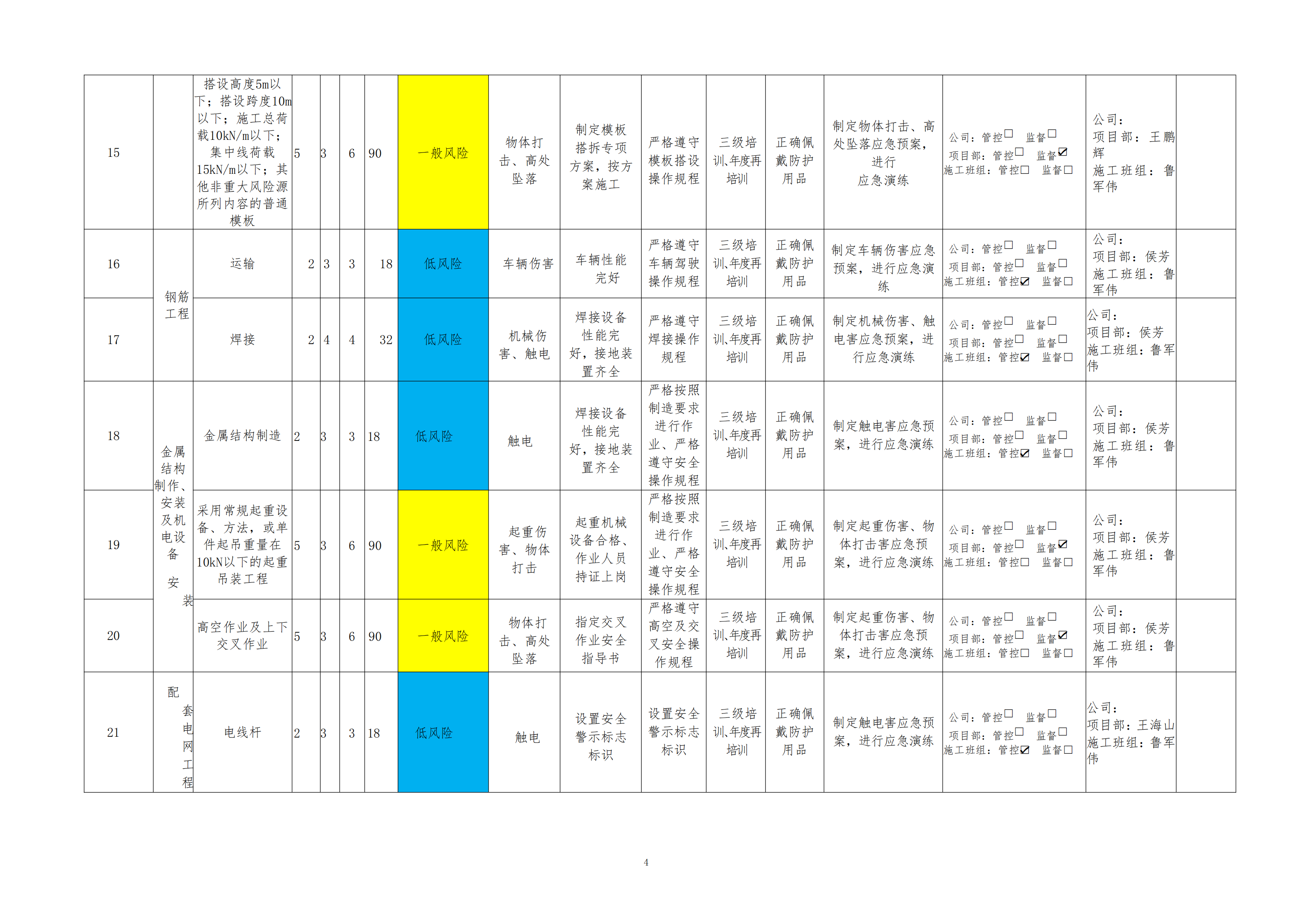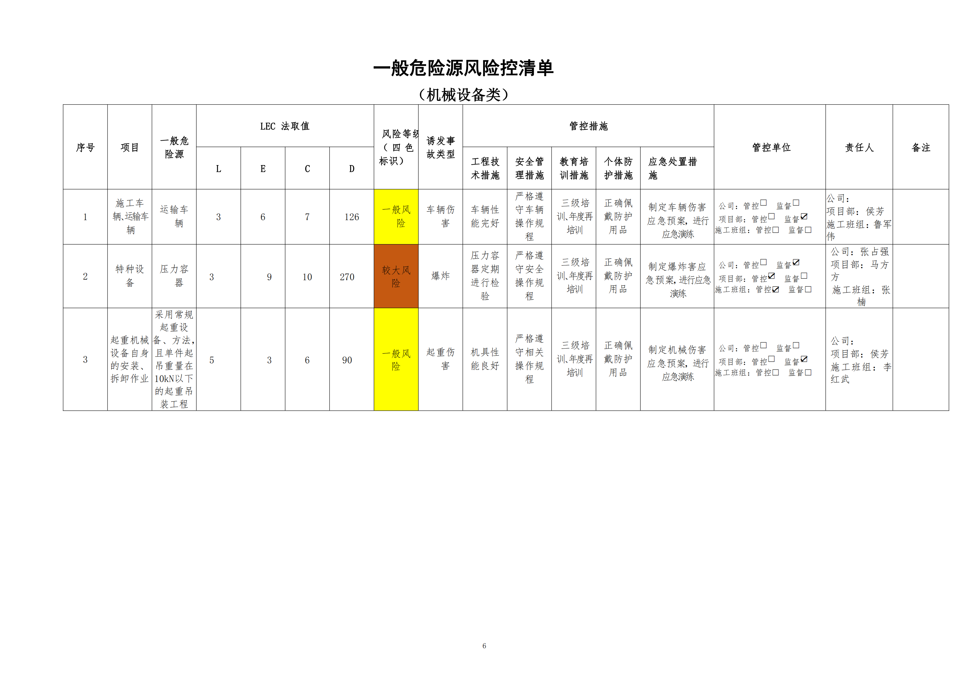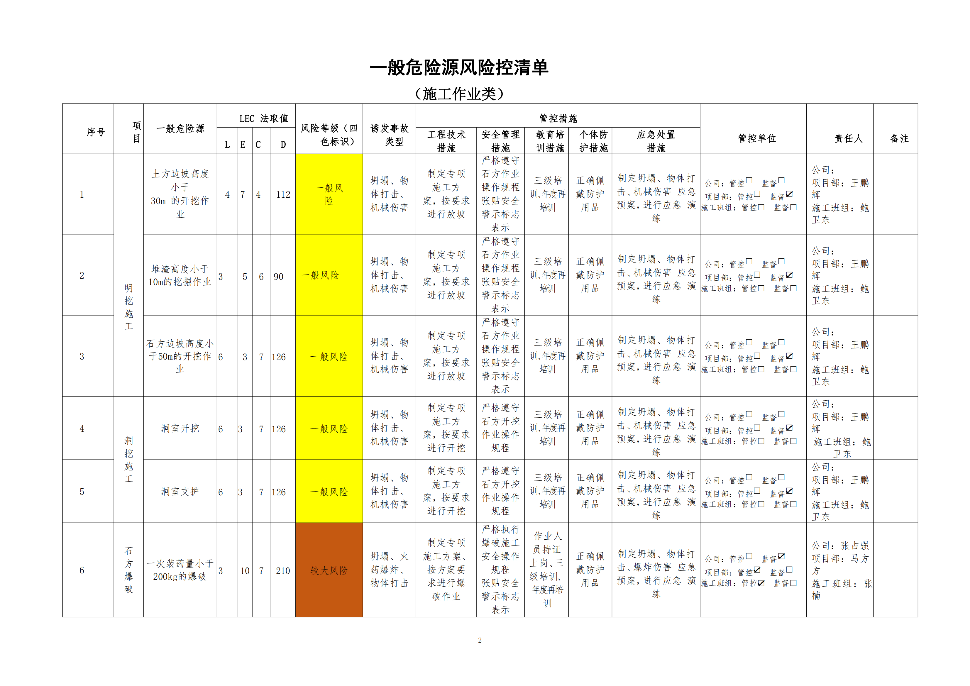 欒川縣新建水庫(kù)一期工程施工一標(biāo)段危險(xiǎn)源風(fēng)險(xiǎn)分級(jí)管控清單(4月)