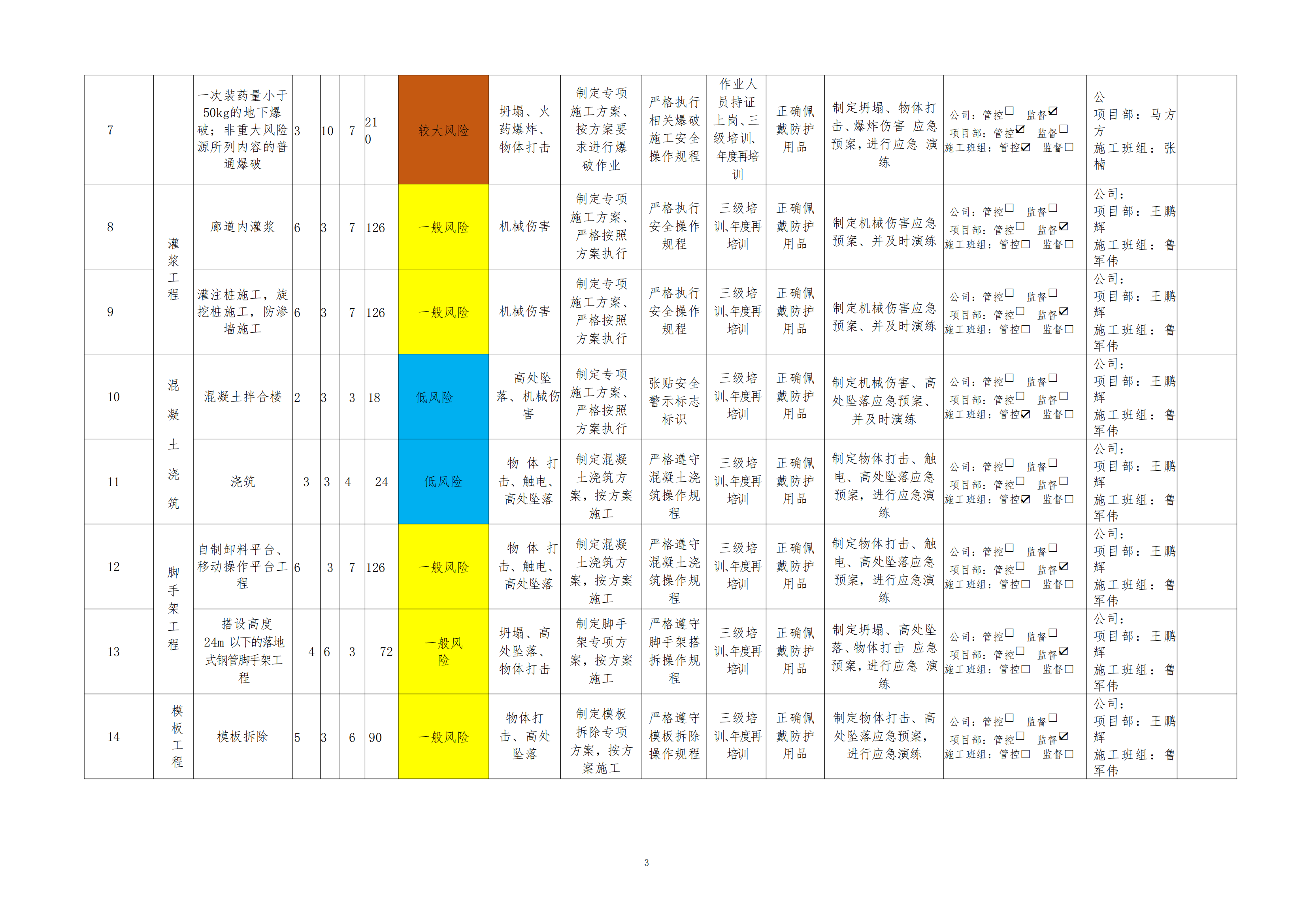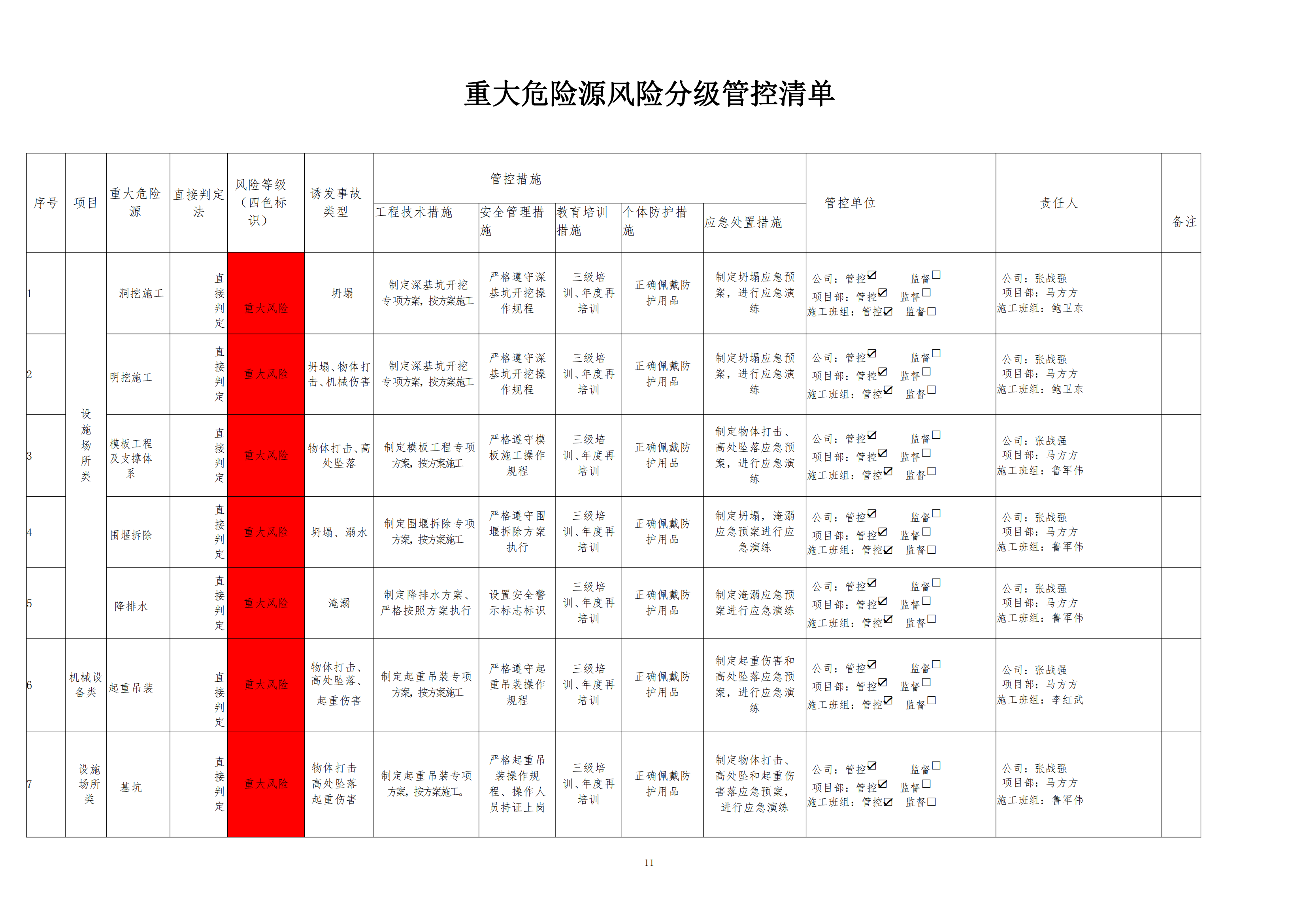 欒川縣新建水庫(kù)一期工程施工一標(biāo)段危險(xiǎn)源風(fēng)險(xiǎn)分級(jí)管控清單(9月)
