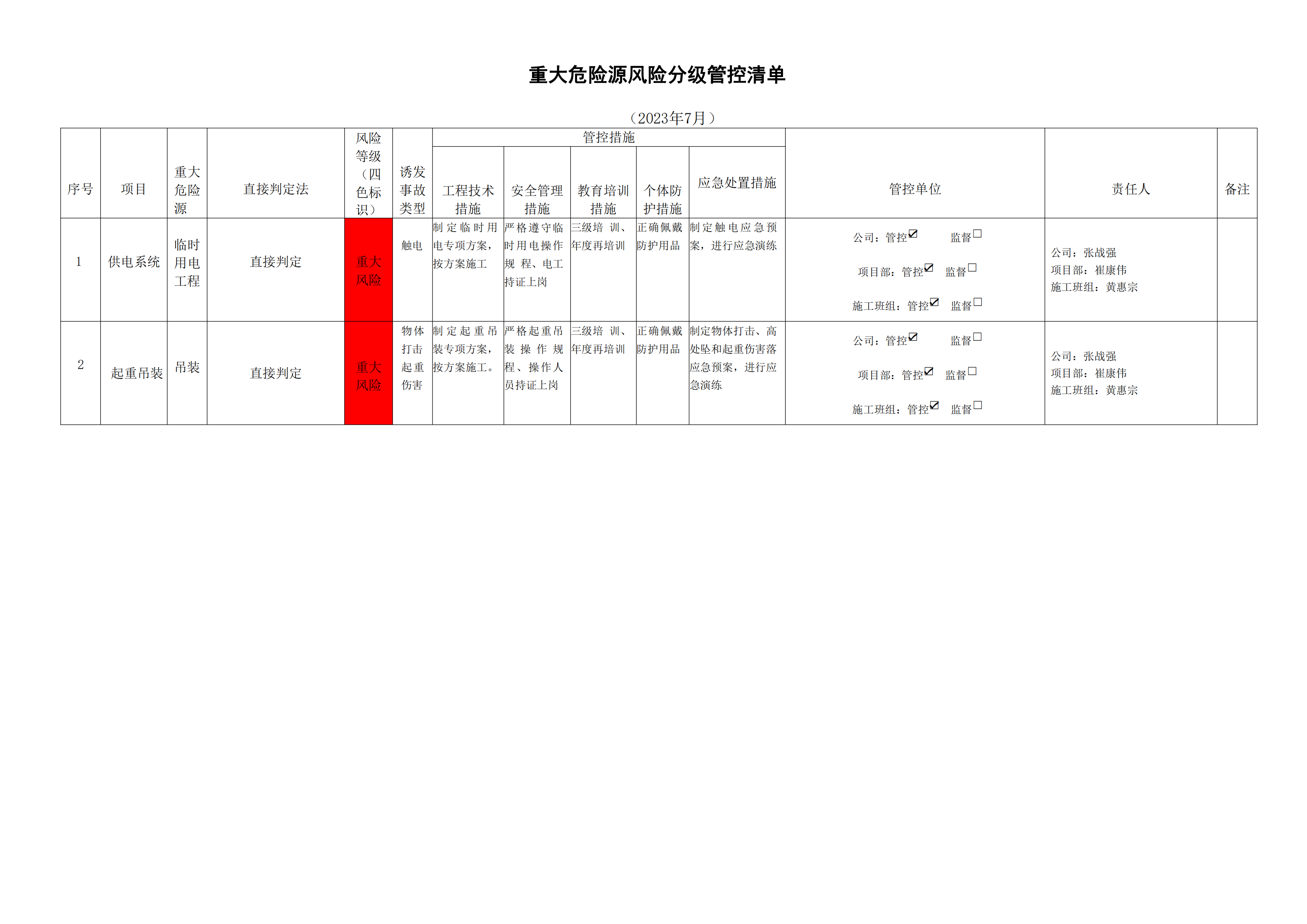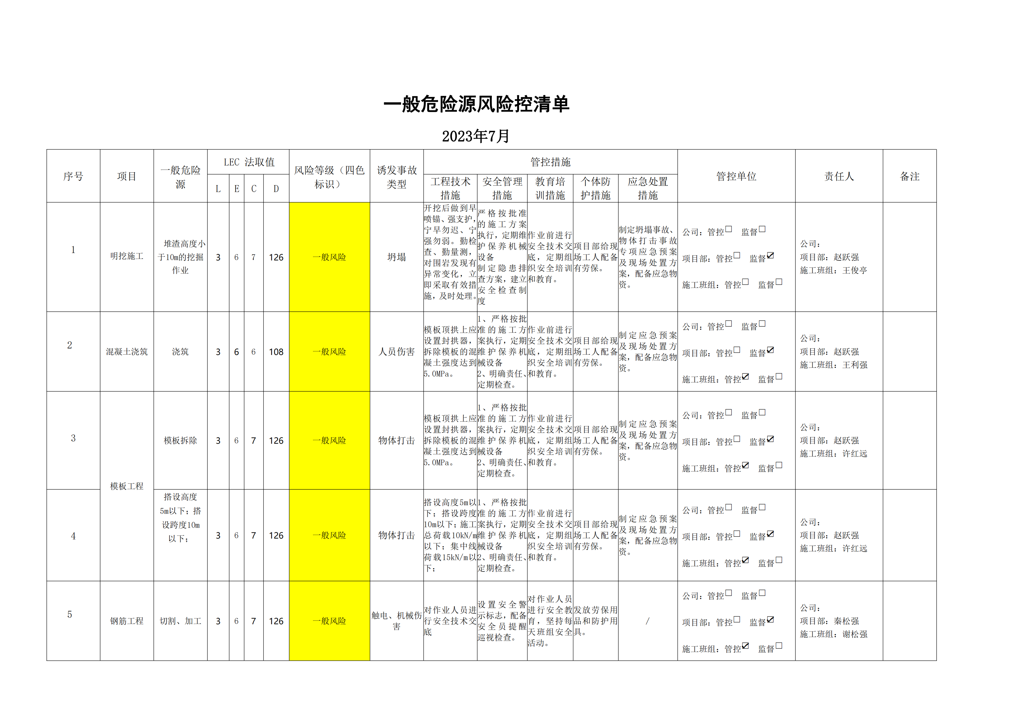 小浪底南岸灌區(qū)7標項目危險源風(fēng)險分級管控清單(7月)