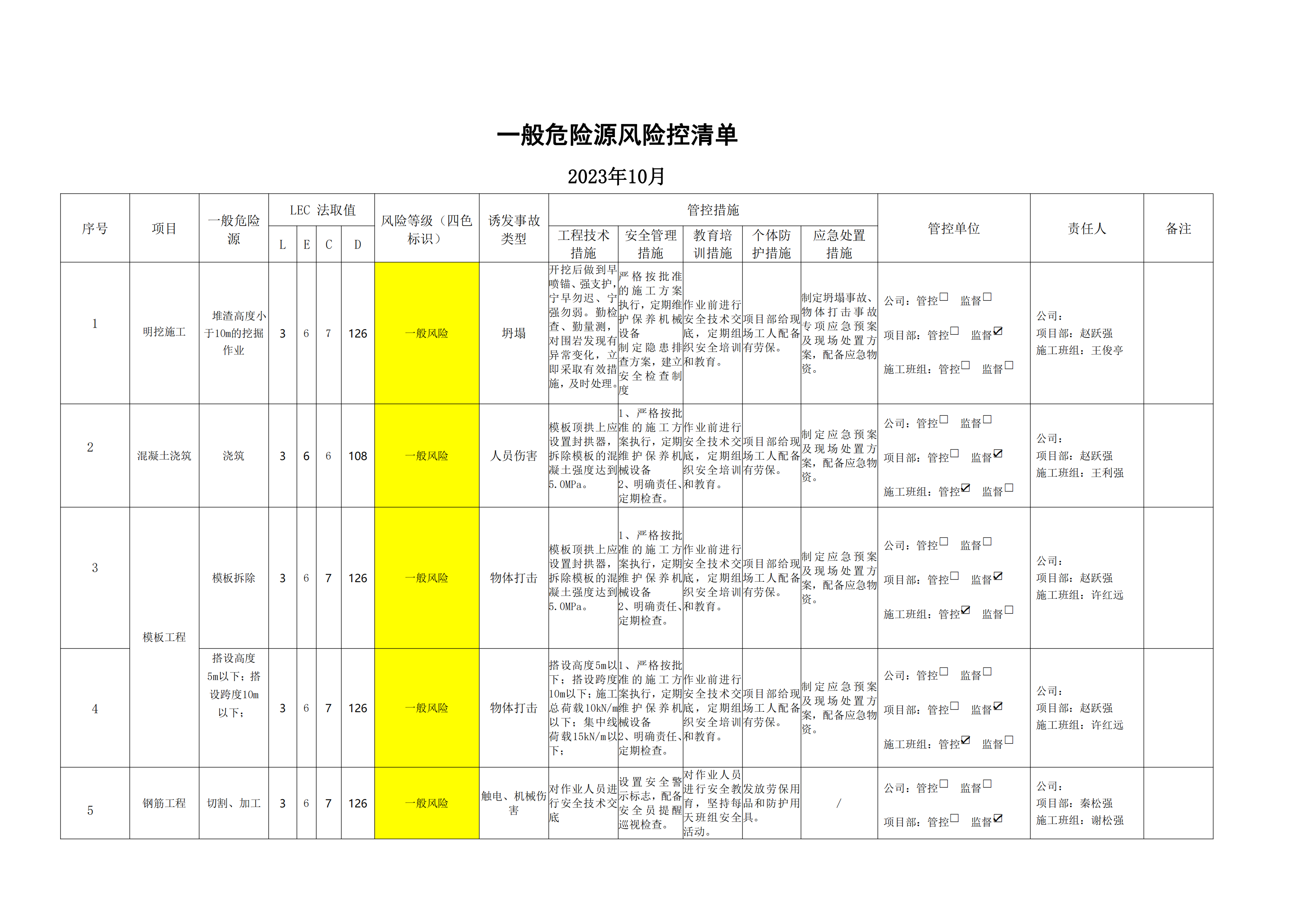 小浪底南岸灌區(qū)7標(biāo)項目危險源風(fēng)險分級管控清單(10月)